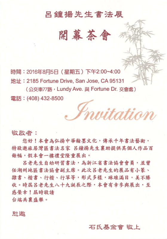8/5/16 呂鍾揚先生書法展開幕茶會(照片)