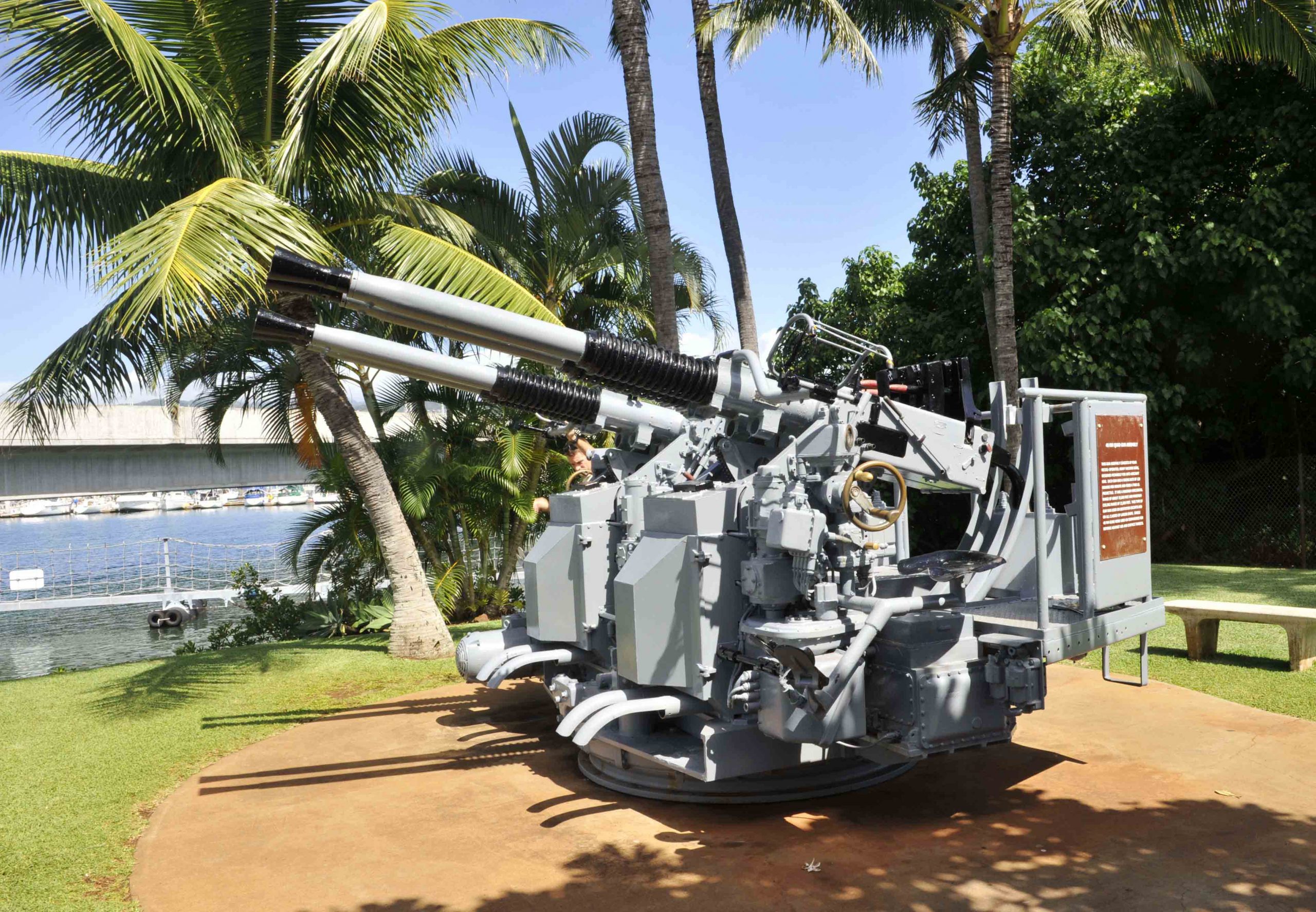 珍珠港紀念館展出當年軍艦上的機關炮
