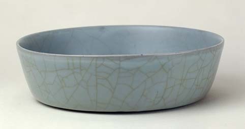 宋代官窯不僅重視質地,且更追求瓷器釉色之美。其厚釉的素瓷很少施加紋飾,主要以釉色為裝飾。常見天青、粉青、米黃、油灰等多種色澤。釉層普遍肥厚,釉面多有開片。這種開片與同期的哥窯有很大不同,一般說官窯釉厚者開大塊冰裂紋,釉較薄者開小片。哥窯則以細小的魚子紋最為見長。