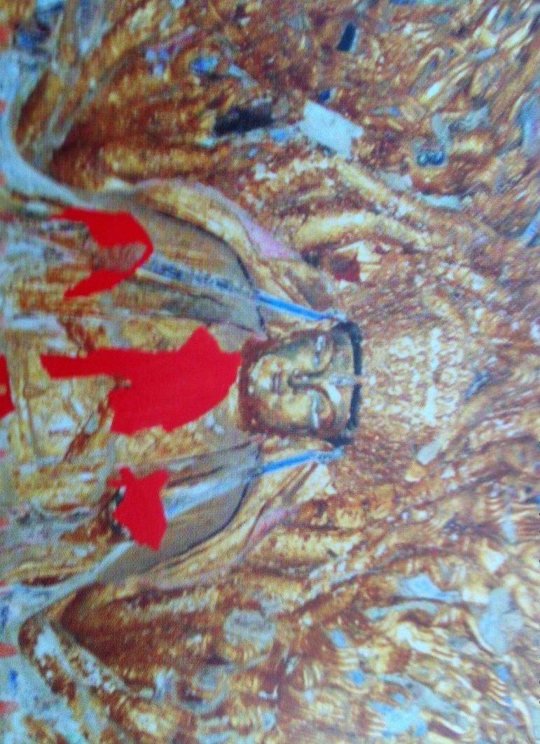 「圖」中釋迦體型豐圓壯碩,雙眼半開半閉,似睡非睡,平靜安祥。在大佛前方,躬身肅立著十四尊聞訊趕來的弟子像,他們或合掌而立,或手捧如意、水果、鮮花,都呈默哀之狀。在臥佛與弟子們之間,有二個天王抬著一個大香案,香煙繚繞,徐徐上升擴散,托起頂上的一塊六十餘噸重的巨石。巨石上雕著九個女像,一個個雍容大度,窈窕俊秀,玲瓏剔透。中間三位是釋迦的母親、姨母和妻子。她們都先他去世,聞訊後率眾天女自天而降,迎接釋迦聖靈歸天。這幅造像突破了佛家經典的束縛,沒有了早期石刻中,釋迦涅盤時那種天搖地震,樹倒房傾,眾弟子呼天搶地,挖心剖腹,引火自焚的悲慘場景,而改以肅穆寧靜的氣氛。這幅「圖」完整而生動地表現了釋迦涅磐的情境,是大足石刻中最具顯赫地位的巨型造像。 [下一篇:中國石窟藝術的最後豐碑 – 世界文化遺產大足摩崖石刻薦(下)]