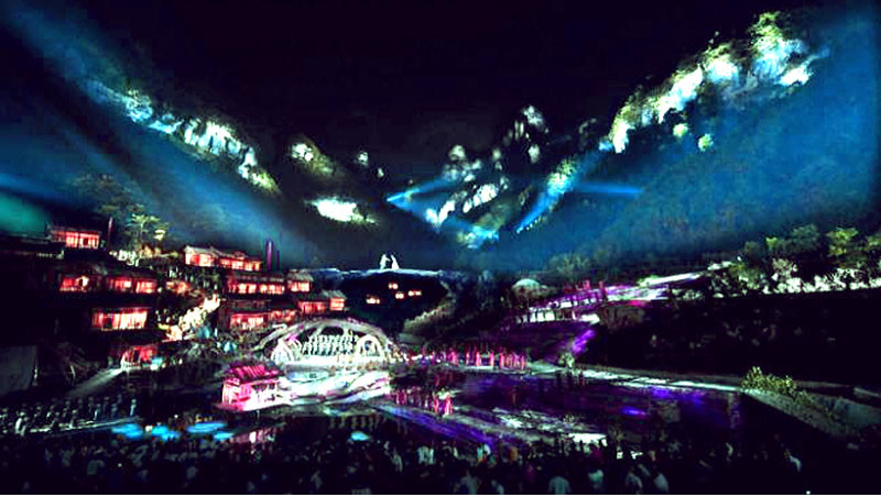 那天正午,離開了煙雨濛濛的張家界,腦際仍浮現著昨夜那場山水實景的苗族大型歌舞劇《天門狐仙》。白日的金鞭溪、黃石寨、鬼谷棧道等,已令人驚艷;入夜後的天門山更是雲霧嬝繞、靜謐淒麗,加之舞台上幽怨哀婉的小狐仙,楚楚動人又妖嬈惹憐(註一):嗯,好個金秋十月的湘西苗疆!