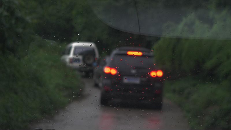 由於前往鳳凰縣的高速路正在翻修,行車時間比預計行程晚了近兩個小時,抵達目的地時已是傍晚七點左右。山路顛簸、盤山迴轉,駕駛同志雖身手矯捷,但我們還是暈眩欲嘔,加之飢腸轆轆了。