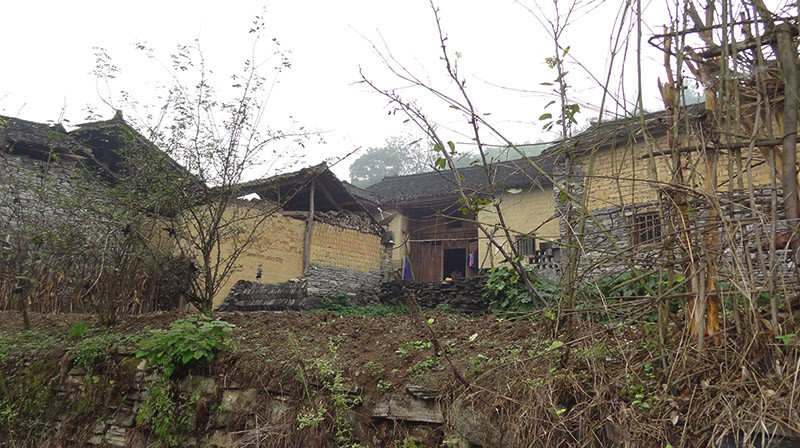 考察結束後,我們隨龍縣長走訪了附近幾家苗民農戶和一座廢棄的苗寨。苗寨依山勢而建,三面環山,僅有一通道可供出入。通道設有寨門,整個苗寨狀若口袋。若官兵或土匪入侵苗寨後,僅須關閉寨門,就可如甕中捉鱉般將敵人殲滅。