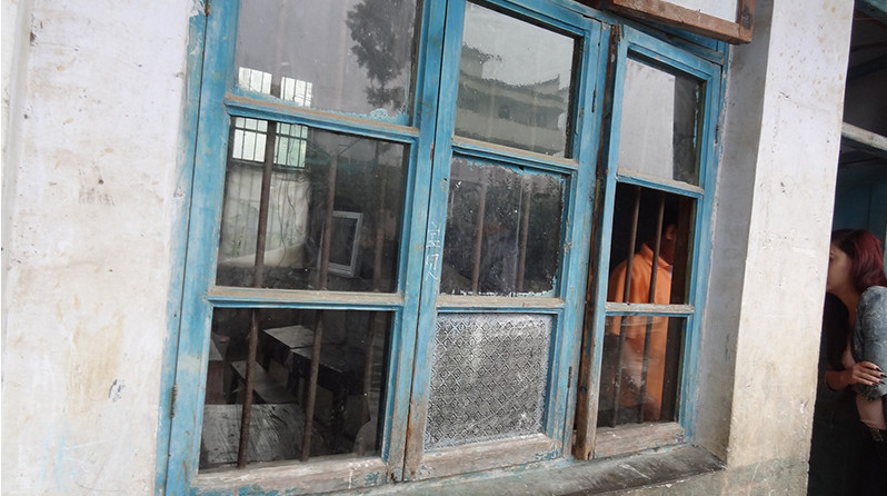 在透風的辦公室裡聽取校長簡報,了解該校的歷史與目前的困難。鳳凰縣教育局代表亦對該校的佈局與重建規劃構想提出說明。然後,校長帶領我們參觀教室、師生宿舍、廚房等設施。校舍在雨後顯得格外陳舊破爛,霉味撲鼻,頓時一股鼻酸直衝腦門。