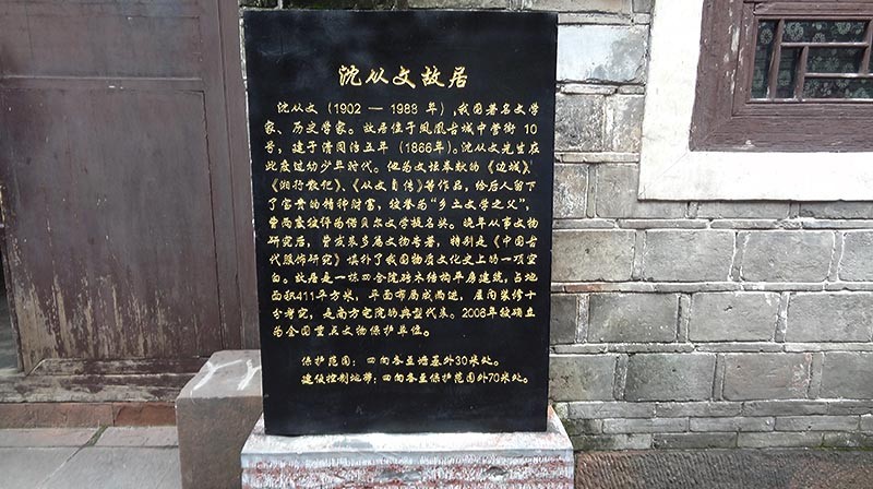 買了古城景區的「通票」,首先造訪了沈從文先生的故居。沈氏有一半苗族血統,他最膾炙人口的小說《邊城》,書中雖然人物不多,情節也不複雜,卻讓人讀來盪氣迴腸。一個在渡口邊的樸實小山村也受封建門閥的桎梏,青年男女表達情意竟是那麼地不自然、蒼白、含蓄和不可捉摸。尤其是小說中的女主角翠翠,哪個讀者不關心她的下場與結局?當然,沈氏筆下樸實寧靜的湘西,如今卻已澈底改頭換面,再也難尋昔日的情境了。沈氏故居簡陋而素雅,室內略嫌陰暗。記得那年隨朱琦老師「江南文化之旅」時,曾路經浙江烏鎮茅盾的故居,亦是如此。似乎作家要在艱苦的環境中方能寫出傳世之作。