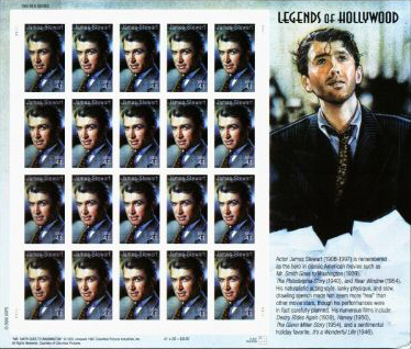美國郵政總局已於去年(2007)8 月 17 日發行 41 分「詹姆斯史都華」紀念郵票一枚(圖一)。此票屬「好萊塢傳奇系列」,此系列郵票自從 1995 年第一次發行 32 分「瑪麗蓮夢露」紀念郵票開始,每年發行一枚,今年的史都華郵票已是第 13 枚。