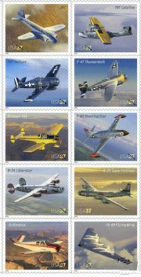 2005 年 7 月 29 日,美郵發行 37 分「美國航空發展」十聯刷紀念票(圖四),左第四板即為 B-24 重轟炸機。