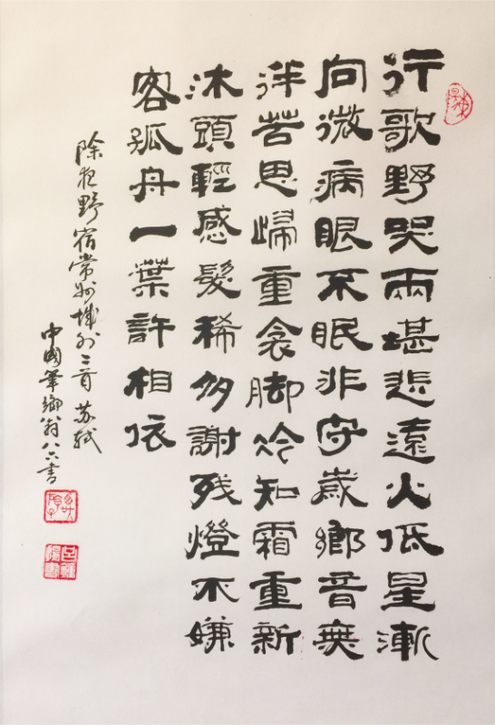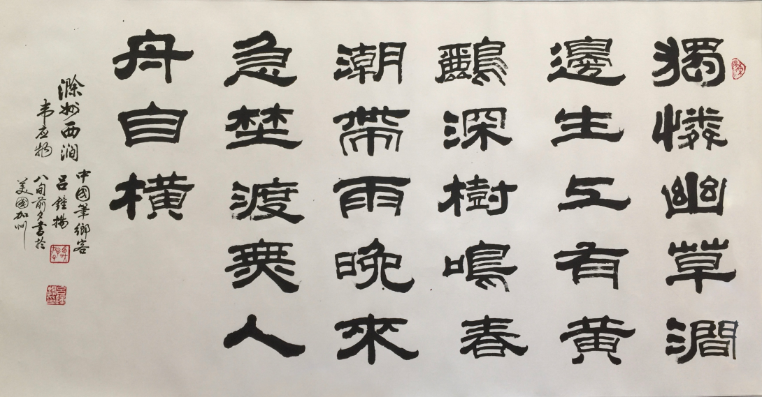 2017年10月,父親辭世,一晃八年。他老人家與石氏基金會的結緣是始於2003年,這二十二年的緣份是老人家來加州矽谷後最大的欣慰。我親眼目睹這些身在異國他鄉的老人們,極力尋找著一份精神寄託。早些年,石氏舉辦的活動,讓他們津津樂道地聊著一日舊金山之遊的見聞;相聚一起時,他們各自述說彼此過往的精彩人生。到後來,父親在石氏基金會的贊助下,於2016年舉辦了個人翰墨展,展出了一百三十多幅的作品。在那裡,他遇見了許多書法愛好者,並對每週的書法課,父親總是期盼。課間的揮毫,目光的聚集,是一份榮耀與驕傲。在文房四寶居冠的湖筆故鄉湖州(長興),是我的故鄉。那裡的山水曾留足過唐代書法家顏真卿、宋代蘇東坡、元朝趙孟頫、明朝歸有光和吳承恩的足跡。而我每次回到故鄉,也企圖在這日新月異的歲月裡尋覓著父親殘存的翰墨遺跡,然而,在大洋此岸,在美東、美西生活的二十三年裡,他不遺餘力地弘揚中華傳統書法藝術。2014年5月的亞裔月,他獲得了薩拉度佳市(Saratoga)貢獻獎,他的書法作品《地美人傑》被當地博物館收藏。為了紀念父親,我整理了他的一些翰墨作品(圖一至圖五),讓大家看到耆英耄耋在生活裡的美好。