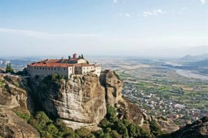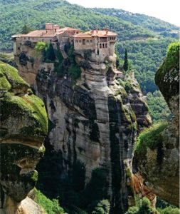 離開德爾菲五個多小時後,我們來到邁泰奧拉(Meteora);一個不可思議、也是這次希臘行我最喜歡的地方。Meteora 的希臘文意思為「懸浮的石頭」,或者是「空中徘徊」,這裏一座座岩柱拔地而起,巍峨地矗立在平原之上。岩柱是由砂岩和爍岩經過六萬年的地殼板塊移動推高形成的,平均高度為三百多米,更令人驚奇的是柱頂上矗立著一間間修道院。這個巨大的修道院群,被聯合國教科文組織世界遺產名錄定為自然和文化的複合遺產。