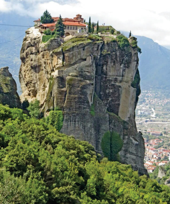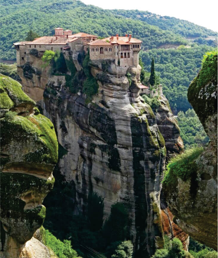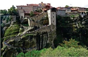 邁泰奧拉一共有二十四座東正教修道院,現在還有六座在運作:五座修士院、一座修女院。每天都有一座修道院不對外開放,所以要去的話,要先了解每個修道院的開放時間表。從前,各個修道院的聯絡和對外的交流都是依靠繩索和籃子,直到 1921 年做為第一位被允許進入修道院的女性 —— 羅馬尼亞女皇,訪問了那裏,才有了今天可以通行的石階。