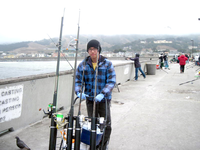 6 月 26 日,筆者由女兒駕車,帶上衛星導航器,從住所的 Los Gatos 市出發。約七十五分鐘光景,順利抵達了帕西菲卡棧橋碼頭。我和女兒共同手持竿包、釣具步入棧橋末端,拿出女兒為父購買的硬海竿,就地現場配了個籠子,便立即裝進魚餌,甩竿垂輪,學著釣太平洋珍寶蟹,清享其樂融融的樂趣。我讓女兒做起了臨時攝影「記者」,拍下了數幅讓人尋味的圖片,讓釣友一同分享這無窮無盡的樂趣。