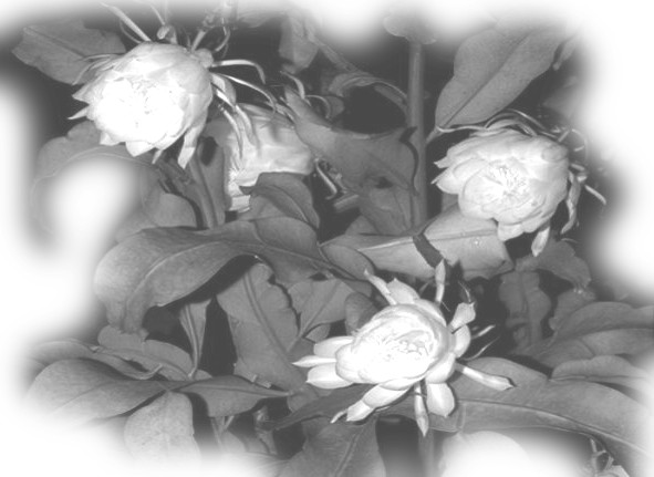 我於是痛下決心,一定看看你的盧山面目,準備好鏡頭、燈光、角度、位置、背景…等候。終於逮住了你,一年兩度的光臨,當夜幕低垂,八、九點鐘時我就嚴陣以待。約十點鐘你就綻開芬芳誘人的姿態,奔放到極至!午夜來臨前你也精疲力竭,完成你的曇花一現的使命 —— 曇花。