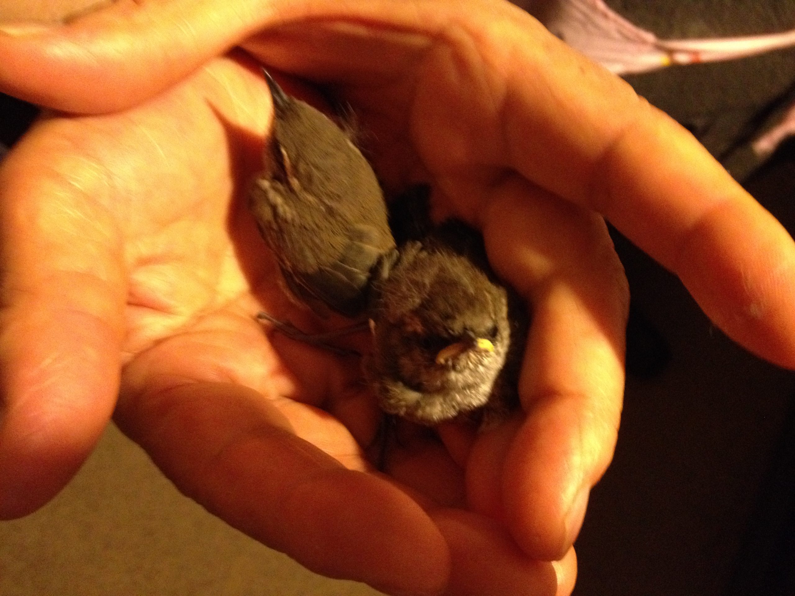 傍晚時分,突然發現陽台上黑壓壓的一群,還以為是他們的朋友來訪,仔細一看是他們一家六口。其中有四隻短尾巴。在沒注意時突然全不見了。該不是從陽臺掉下去摔傷了,想到此我立馬跑到樓下,找呀找呀……他們飛行技能尚不高,第一次出家門,天色漸黑,萬一碰到天敵……想到此,我一定得找到他們。偶然間發現在鐵絲網籬笆裡面有四隻短尾巴,外面也有兩隻鳥在「低空飛翔」,離地面只有一尺,他們都緊貼著籬笆平行的向同一方向跑。我恍然大悟,外面的二隻不就是這夫婦倆,正在護航、訓練他們的子女試飛嗎?當跑到拐角處,裡面的四隻突然停下來,我一個箭步上前把他們捉住捧在手裡跑回家,並讓老公給他們兄弟姊妹來個合影。我攤開雙手,他們既不怕又不掙脫很平靜的與我合作。我愛不釋手,小心翼翼送到他們「家」裡。說時遲那時快,剛放進去,這夫婦倆立即飛上來鑽進「家」裡,多麼不可思議又令人感動的場面!我內心不禁發出感慨:不可欺也!