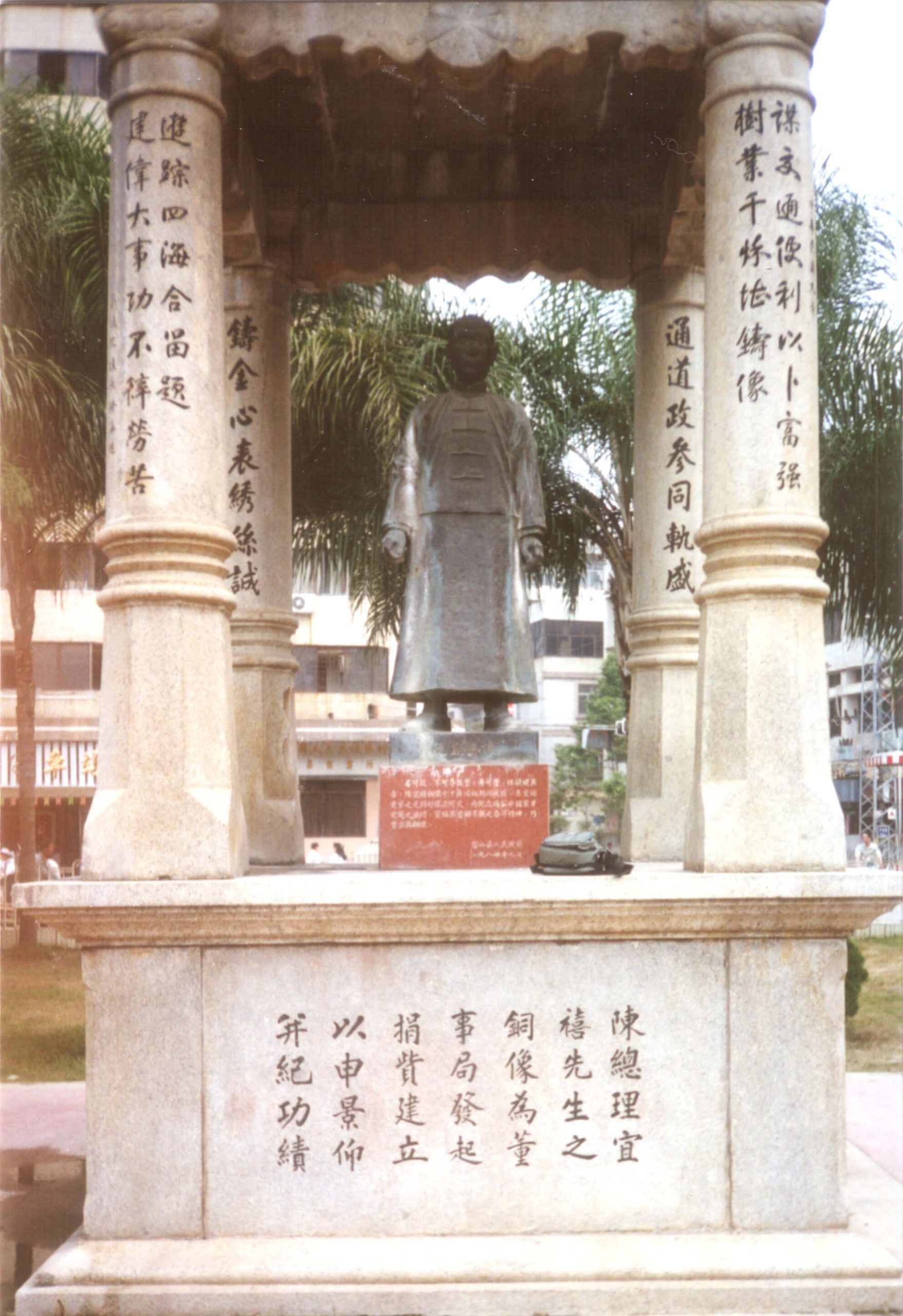 各位敬愛的耆老,中國以前有一條「新寧鐵路」,您知道在那裡嗎?不知道呀,讓我告訴您吧!七十三年前(1944 年)我進入廣州大學台山附屬中學讀初中一年級時,就是在新寧鐵路公司的辦公大樓上課。那時,鐵路已停止營運,公司亦已解散,我們學校就租用公司辦公大樓為校舍。每天上學時,都要經過鐵路車站(圖一),一進入校園,就會看到建立在大樓前面的新寧鐵路創辦人陳宜禧先生的銅像(圖二)。在大家心目中,總覺得他真是一位了不起的人物。