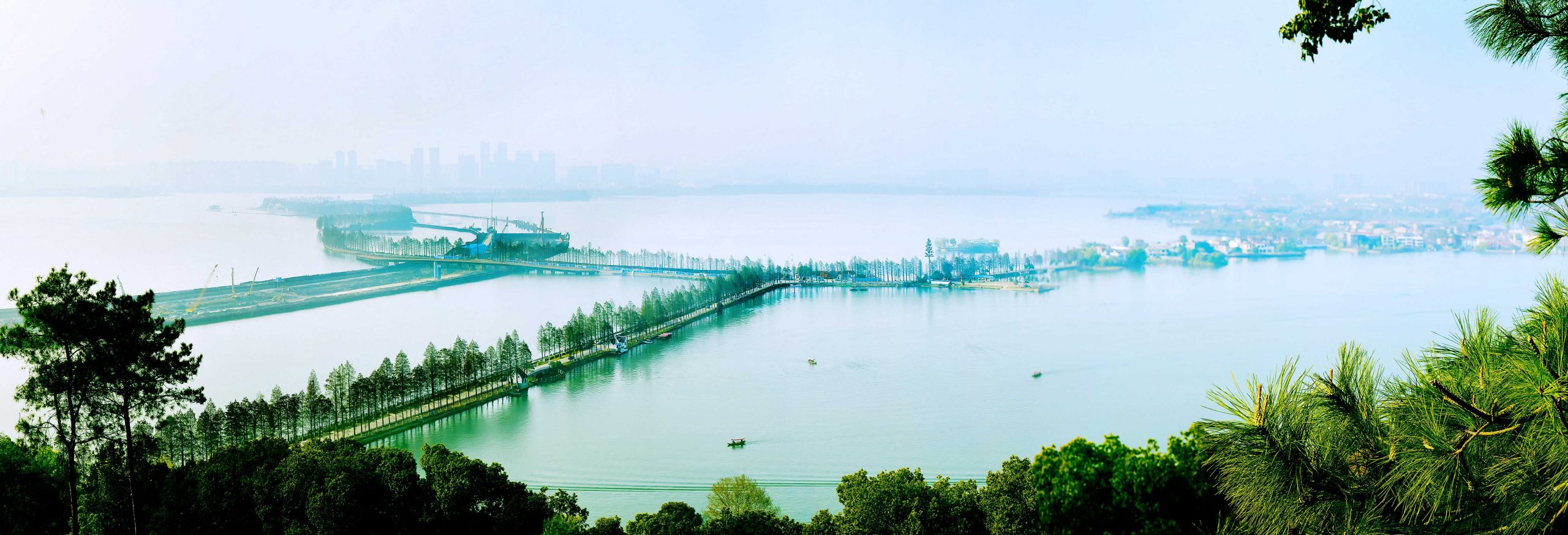 從這裡放眼湖面,山水相依,湖光山色濃妝淡抹總相宜。湖面上一葉小舟和部分畫舫在緩緩淌漾,享受「泛舟看斜陽,風吹聞桂香」氣氛。這裡給現代大都市緊張快捷的工作人群提供了一個享受慢生活舒緩身心的最佳去處。