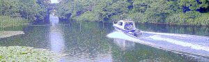 不久水面珍珠驟增,且細線消失,白條現顯。估計雨中伴有球狀水滴,甚至雹粒:意味著大雨降臨。一葉扁舟漂泊於滂沱大雨之中或躲隱在拱橋之下,這將是何等愜意(圖三)!