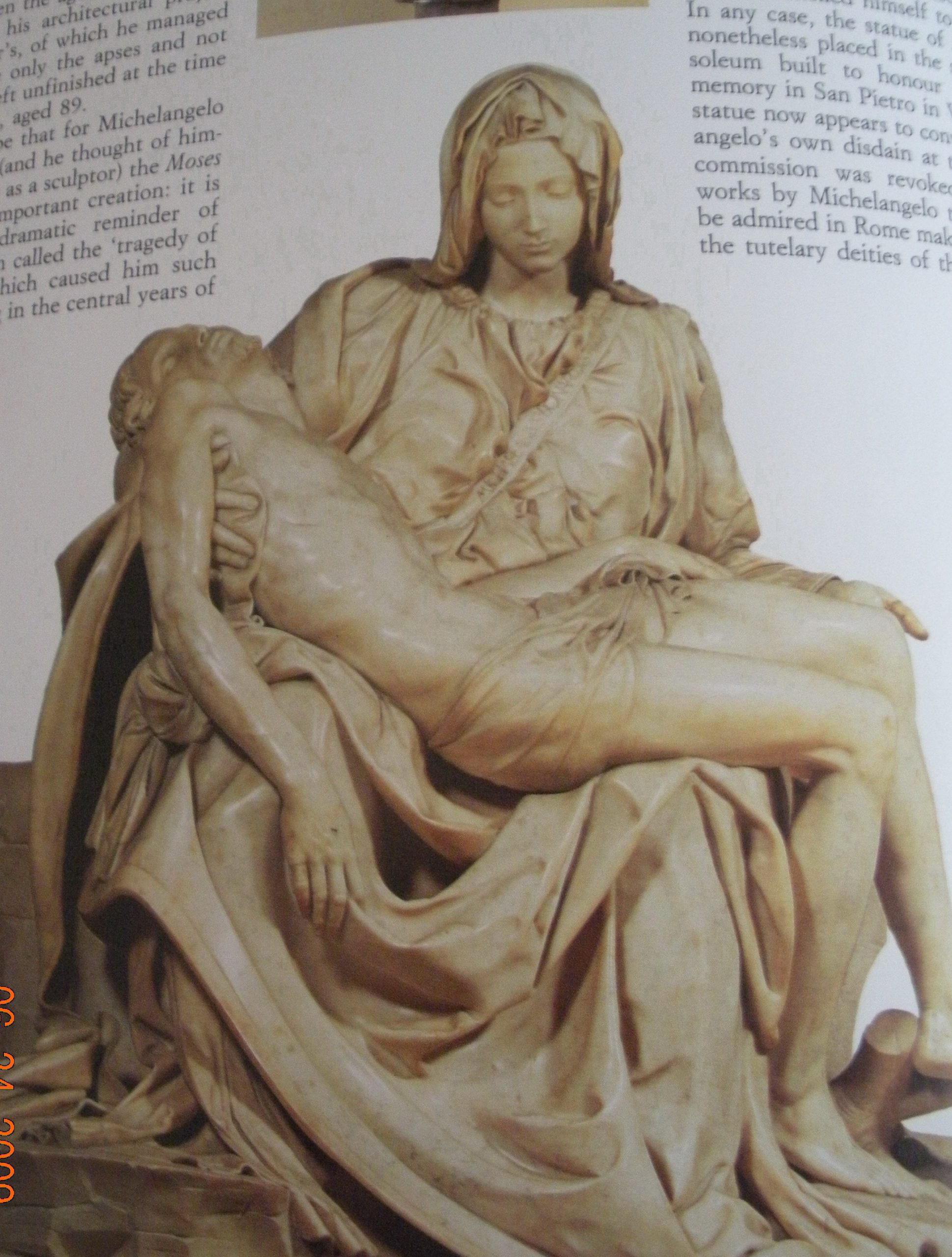聖彼得教堂的前身,是西元四世紀為紀念耶穌門徒聖彼得在此遇難而修建的君士坦丁大教堂。教皇猶利二世從一五○五年起,推倒重建,經 120 年全部完成。先後由文藝復興時期最負盛名的建築師,藝術家勃拉芒特、拉斐爾、米開朗基羅等設計。 外牆周遭和頂端滿是精細雕塑。正門則是雕刻十個宗教故事的青銅門,是為天堂之門,每 25 年才開啟一次。進入宏偉的大廳,全為大理石鋪地。四周是名家的大型壁畫,大型雕像,人們用「天使像巨人,鴿子如老鷹」來形容這些畫像之「大」。最矚目的是米開朗基羅的「聖母慟子像」。幾十根大理石立柱,有七、八人合抱那麼粗。高大的祭台用雕花青銅頂覆蓋,整個教堂本身就是一件文藝復興時期的藝術精品。
