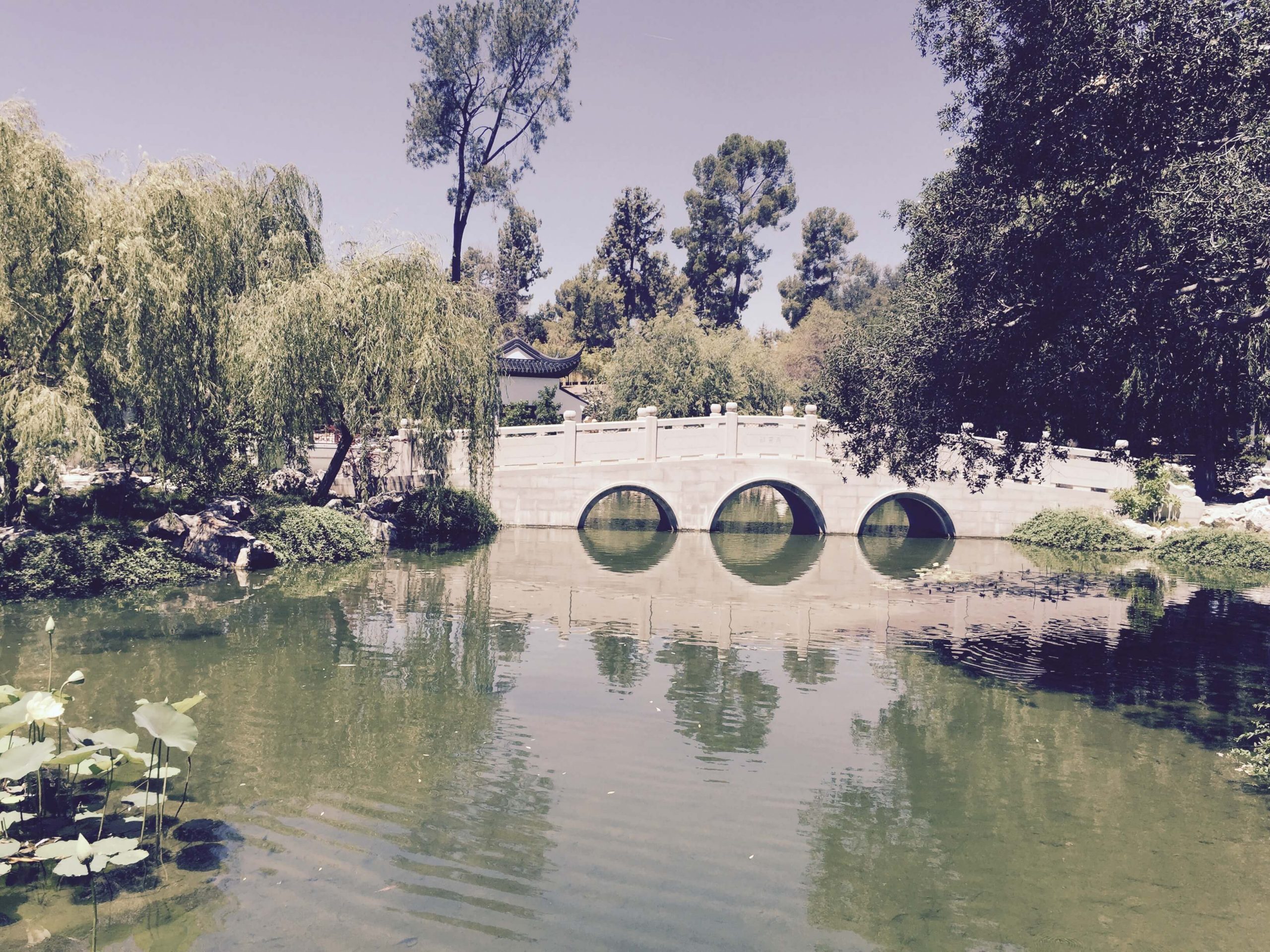 2011 年因女兒搬了新居,邀我和兒子一家再訪洛杉磯,順便再次參觀了杭廷頓博物館和園林。我們特意進入中國園參觀。只見處處樓臺亭閣、水榭長廊、拱橋圓門、魚池荷塘,完全仿照蘇州林園建造,讓人嘆為觀止!據說這些設計是中國園林設計師仿蘇州拙政園所做。材料也是從中國運來的。難怪那麼逼真!讓我們感覺彷彿回到了江南蘇杭。這裡我就不詳細敘說了,附幾張照片可見一、二(圖一、圖二、圖三、圖四)。