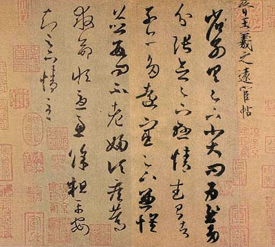 「顛張醉素」,素就是懷素,他受了張旭的啟發,和張的學生鄔彤、顏真卿探討過用筆的道理,也表現出自已的一些特點,融大草小草於一體,在二王的基礎上寫出了另一種靜寂淡遠的風貌。看他的自敘帖,似乎又是顛張的同路人。難怪黃山谷讚他為「一代草書之冠」。