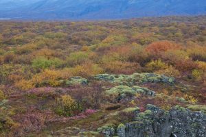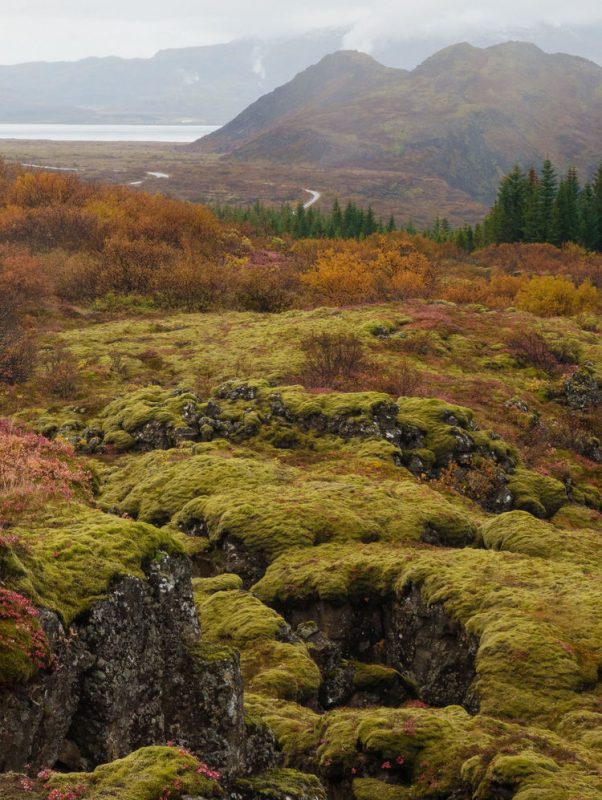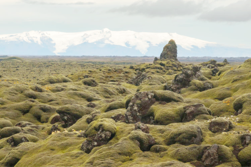 在極地氣候下,苔原是冰島最普遍最常見的植被形態。其中一種是長滿苔蘚的熔岩,也就是說,火山熔岩石被苔蘚類植物包裹了。