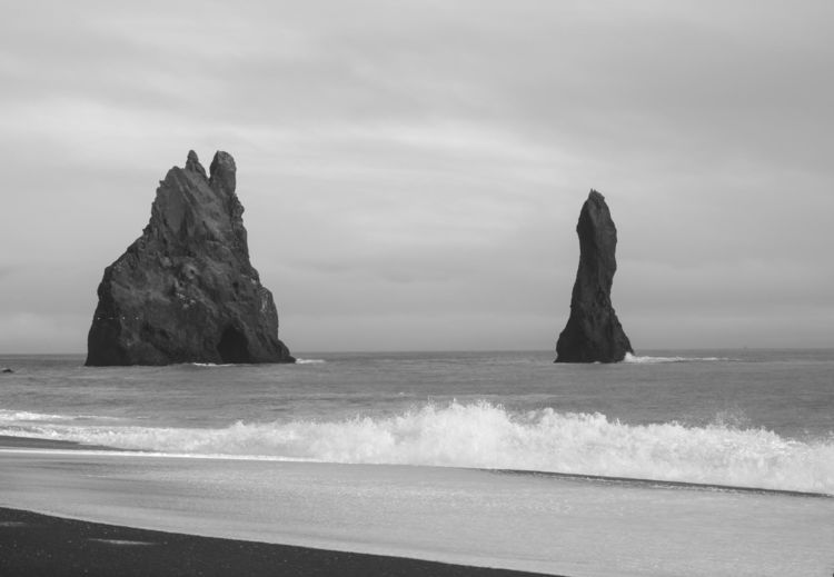 聳立於大西洋驚濤之中的雷尼斯岩柱,像兩個對望的巨人在訴說著它們的光輝過去和後來的悲慘命運。根據民間傳說,這些巨型玄武岩柱是冰島巨魔的遺骸——黎明破曉時,欲將帆船拖入海中的巨魔遭遇陽光,化為巨石。