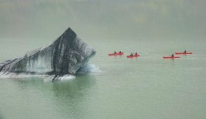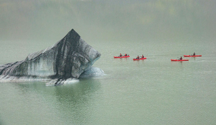 也許是靠近卡特拉火山,噴發的火山灰大量混入了冰川,使得冰塊呈現黑白相間的色彩,而不是印象中白藍色,宛如在欣賞一幅幅動人的水墨畫。