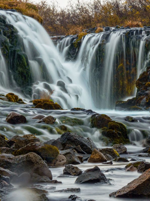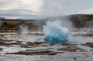 布魯爾瀑布曾經是黃金圈裡的一個秘境,如今越來越受到攝影人士的青睞。瀑布雖不高,但水流湍急,隨後匯成一條藍色的河流奔向遠方。黃金圈裡另一個打卡點是蓋歇爾間歇泉。這裡地熱泉眼有好幾個,其中只有史托克間歇泉約每十分鐘噴發一次。噴發前,泉水會在泉眼上形成一個氣泡,然後噴湧而出,高度可達十五至二十米。如站在下風處,可聞到一股硫磺味。