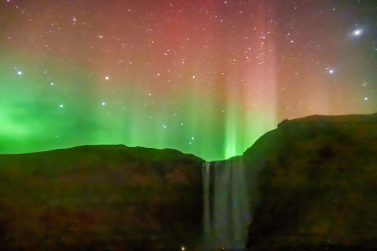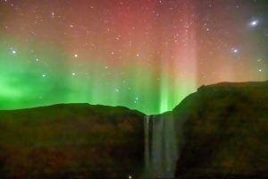 科斯加瀑布拍攝到的極光