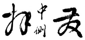 乙.右側(圖五):豎向右邊傾斜或在右撇左捺的搭配下,撇長捺短,斜度不等,形成右側之勢。