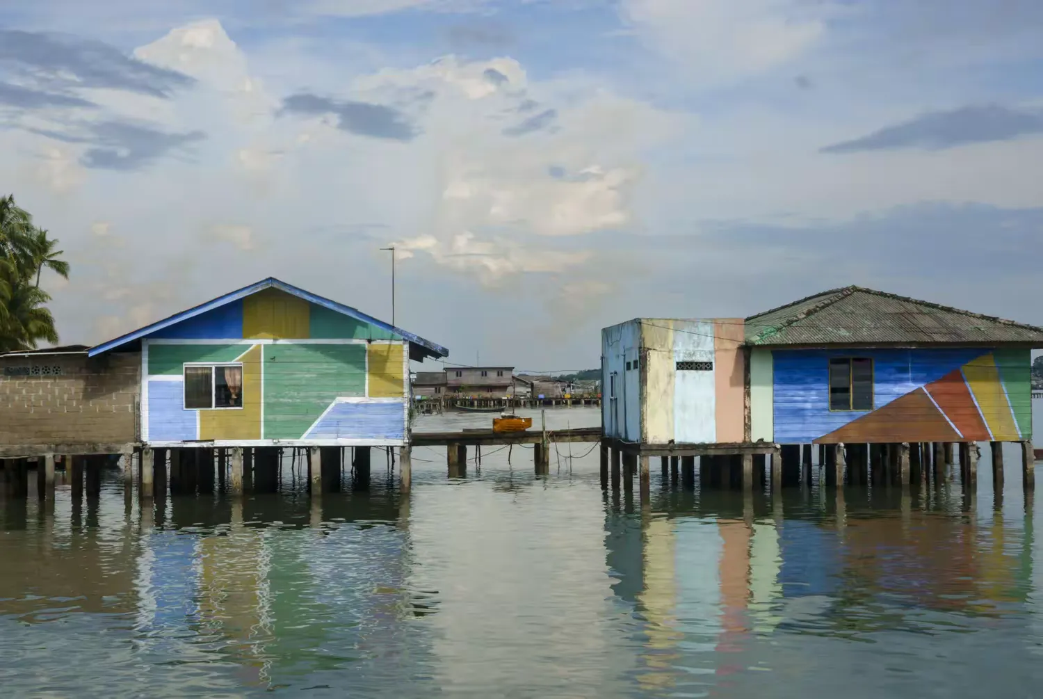 下午,我們去了一個彩虹村,一個典型的東南亞一帶的奎籠建築群。所謂「彩虹」就是村裡的高腳屋都被漆成了五顏六色。