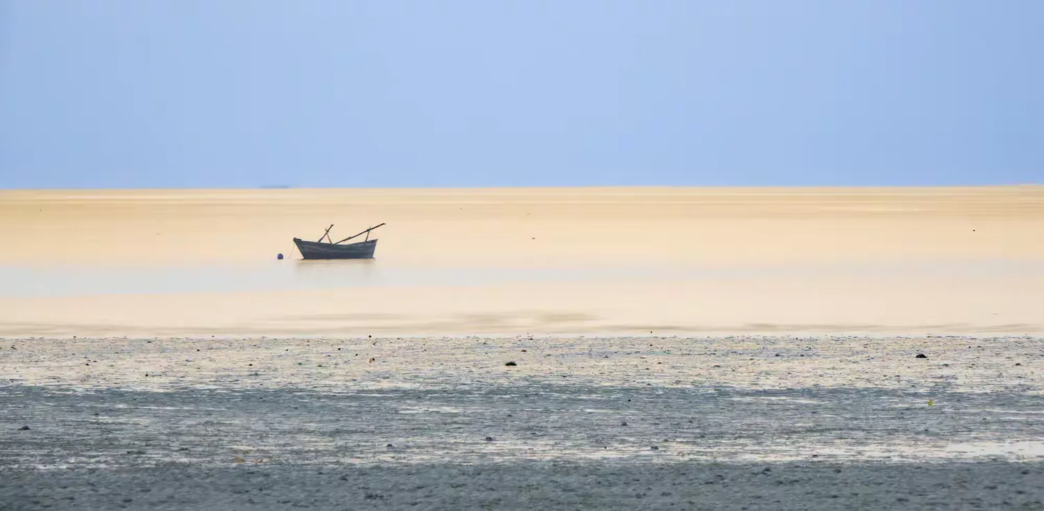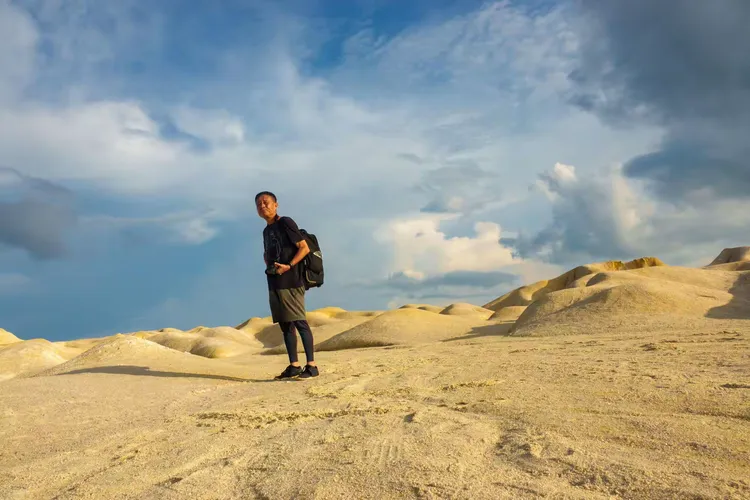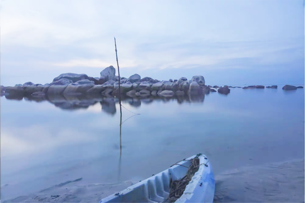 下午我們來到 Trikora Beach 拍日落。一座棧橋孤獨地立在海中,任憑風吹日曬、潮起潮落。伸出鏡頭,將漂在海面的一艘小船攬入畫面,其與海面的暖色、近處的灰褐色構成了一幅極簡的圖畫,不知達到了效果沒有。此時,落日被厚厚的雲層遮蓋,只是吝嗇地露出一點點霞光。夥伴們用他們的超廣角拍出的照片很有衝擊力,而我鏡頭只能拍成這樣了,已經盡力了。