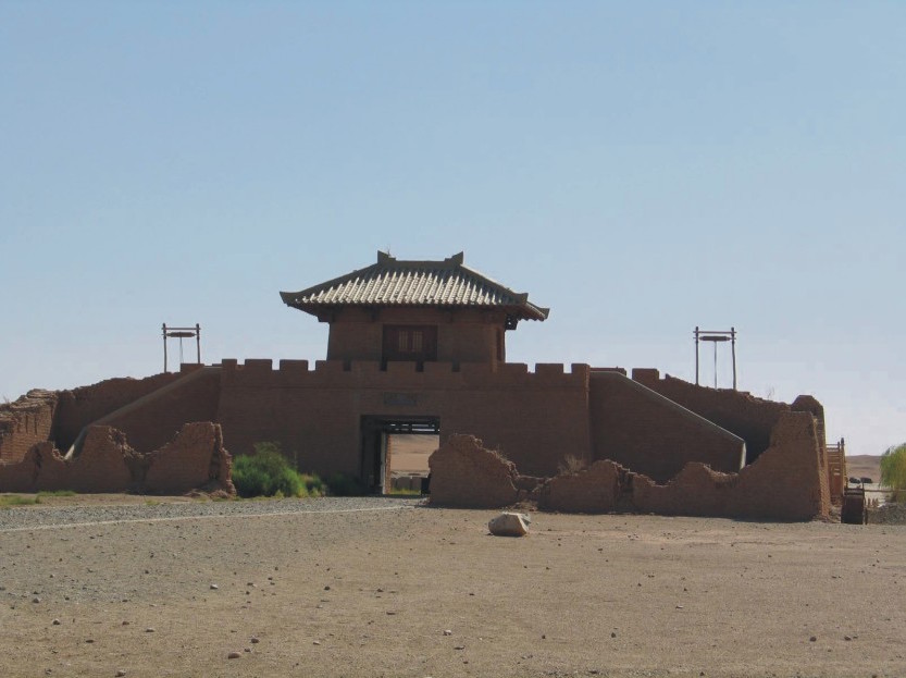 「挪,這就是陽關的『都尉府』,您進去辦個『關牒』,他們就會讓您出關了。嘻嘻!別忘了『西出陽關無故人』囉!」她調皮地說。