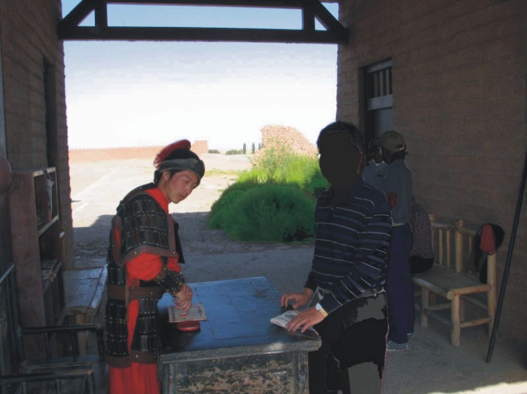 拿了關照,我喜孜孜地走到關口,由另一位身著鎧甲的戰士笑嘻嘻地在上面蓋了章,意思是「放行」了。嗯!比真的還像。