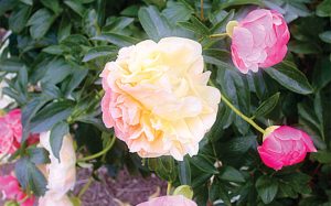 年幼時見過一點牡丹與芍藥,記憶中前者花很大且重瓣,後者花較小,瓣不多。工作後,單位的主樓前有一數平方米的小花壇,上植二株牡丹並一些芍藥。每年三、四月間可先見到牡丹開放,繼之芍藥登場。花壇周圍,少不了一些賞花觀景甚至吟詩作畫的好事(色)之徒。綠化工也因能植出這兩類國色天香花朵而頗受尊敬,身價倍增。記得有一次他就曾向我透露過養此花之訣竅:「它們吃得要好,要吃『葷』的!」「花居然靠『葷』長姿勢,這等是什麼『洋葷』?」「豆渣、黃豆屬小葷,最好的是豬下水、大腸等。」這確實把我嚇著了,因為很長時期按人頭憑票供肉,要為它們弄點「特供」的豬下水,談何容易!但看來美國的牡丹園主似另有高招:不用中國的「洋葷」,而種出數百同種但不同型的好花。