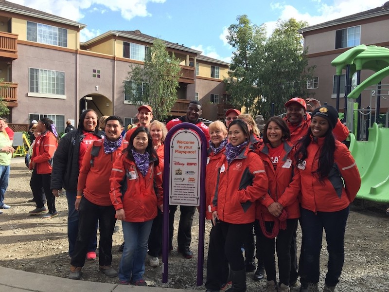 主辦委員會用了近三年的時間,對此次賽事進行了周密的規劃、設計和準備。在住宿、餐飲、娛樂、商業服務、觀光服務、社區環境……等方面做實事,並組織大量義工投入工作。二女兒先後參加義工服務三次,其中一次與夥伴們為某社區安裝兒童滑梯。義工們互不認識,按時到達指定地點,見負責人拿出圖紙,指著運來的一堆零配件,有條不紊的指導大家工作。義工們按步驟組裝好綠色滑梯,通力合作將其豎立在小區中,並認真檢查地腳鏍釘是否緊固。完工後很高興合影一張留念(前排左一為二女兒),義工們身著主委會免費贈送的印有徽標的紅色外套、帽子、藍白二色花紋圍巾(圖六)。