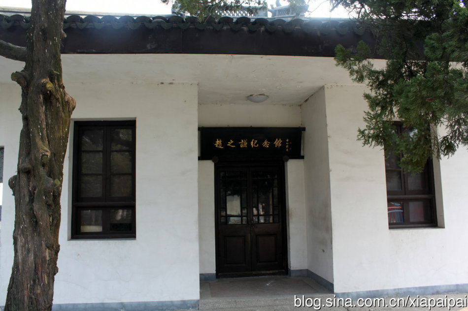第二天去兒童公園訪「趙之謙紀念館」。我四舅趙而昌先生(註)為建此館曾出過不少氣力。生前要我幫忙,當時我因為生活奔忙,無暇顧及。今有機會,想去看看。公園售票處熱情接待,並有專人為我打開紀念館大門,讓我入內瞻仰。紀念館為公園內一緊鄰荷花湖的獨立建築,入口處有古柏數枝,蒼勁挺拔。