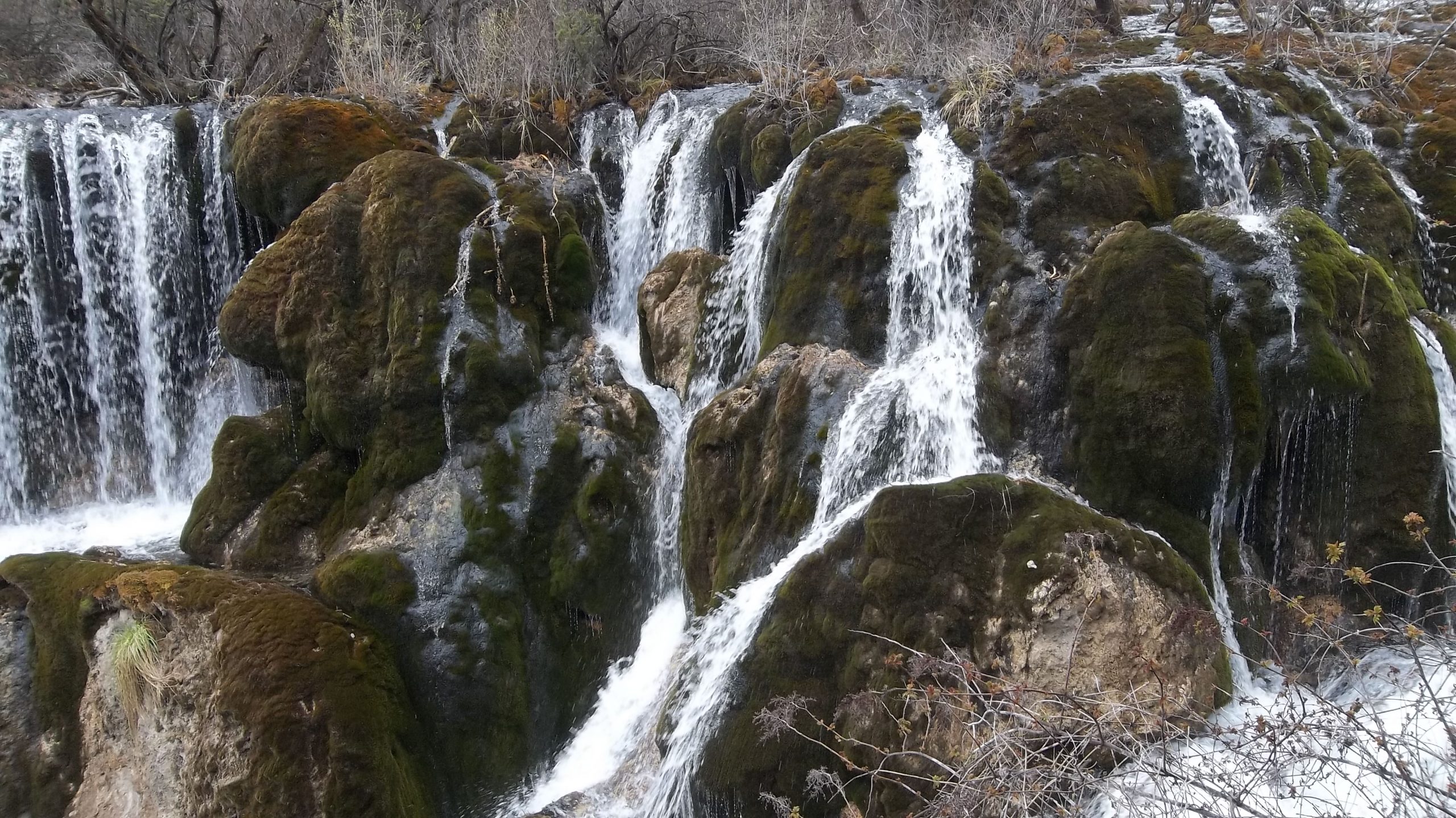 到九寨溝遊各景點,可乘公園的 Shuttle 巴士,但候車費時,也可集體包輛巴士,每人三百元,人就省力些,交通上選擇,各取所需。進入園內,目睹魚在水中游,鳥在空中飛,深感人似在畫中,水境之美係動靜皆美,相得益彰。動如「樹正瀑布」,高懸山巔,舉目張望,猶如千軍萬馬奔騰而下,匯成股股急湍雪水,迤邐穿流巖石間,奮勇向前,蔚為壯觀;靜如鏡海,平靜如鏡,湖水呈綠,閃閃發光,清澈見底。「潭面無風鏡未磨」,如此旖旎迷人的自然風光,怎不叫人流連忘返。