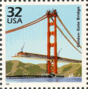 1﹒1997 年,美郵於舊金山舉行「太平洋 97 世界郵票展覽會」。6 月 2 日發行明信片二枚,以紀念金門大橋六十歲生日,二十分片之郵圖為大橋白日景像,用於國內平郵片;五十分片之郵圖為大橋日落景像(圖五),此片適用於國際航空(加、墨除外)。