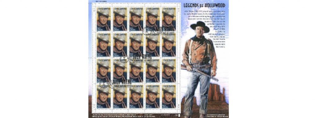 2004 年 9 月 9 日,美國郵政在加州洛杉磯發行電影明星約翰韋恩紀念郵票一枚,這也是自 1995 年美郵發行瑪麗蓮夢露「好萊塢傳奇系列」以來之第十枚郵票。[...]