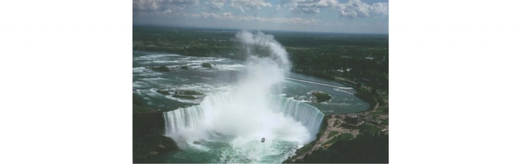 一.馬蹄瀑布 馬蹄名瀑氣沖天,座落美加邊境連; 膽戰登舟侵虎穴,雷聲不絕我登仙。